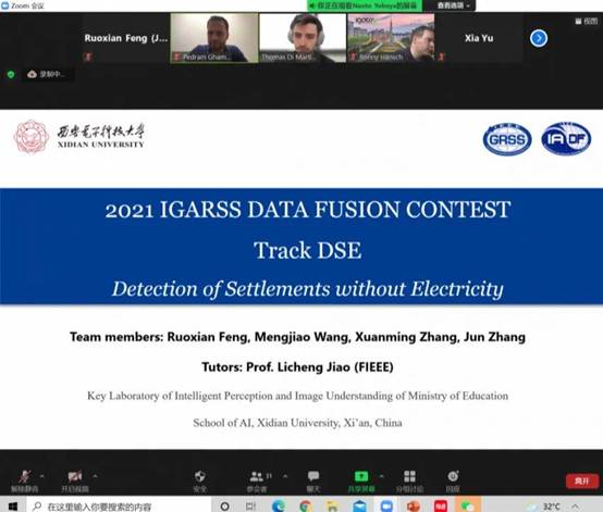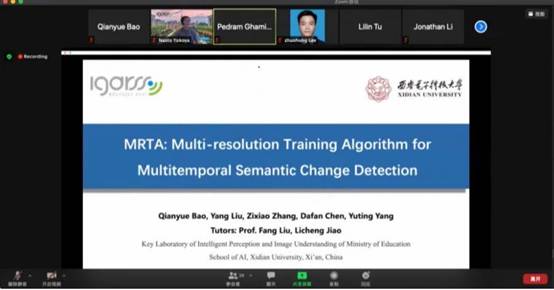 7月16日,第41届IEEE国际地球科学与遥感大会及颁奖会在布鲁塞尔和线上同步举行。由yl7703永利官网焦李成教授、刘芳教授指导的竞赛冠季军获奖学生队伍受邀在大会上作专题报告。本次报告的三支学生队伍取得了一冠军两季军的成绩,其中由“马彦彪、李钰鑫、冯可心”组成的学生队伍获得了2021 IEEE GRSS Data Fusion Contest Track DSE(数据融合竞赛无电居民区检测挑战赛赛道)冠军。“冯若贤、王梦娇、张轩铭”组成的学生队伍获得了同赛道季军。由“鲍骞月、刘洋、张紫霄”组成的学生队伍获得了2021 IEEE GRSS Data Fusion Contest Track MSD (数据融合竞赛多时段语义变化检测挑战赛赛道)季军。本次竞赛由国家自然科学基金、中国人工智能学会-华为MindSpore学术奖励基金资助。