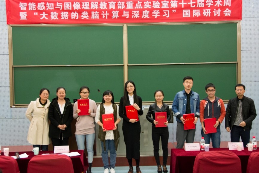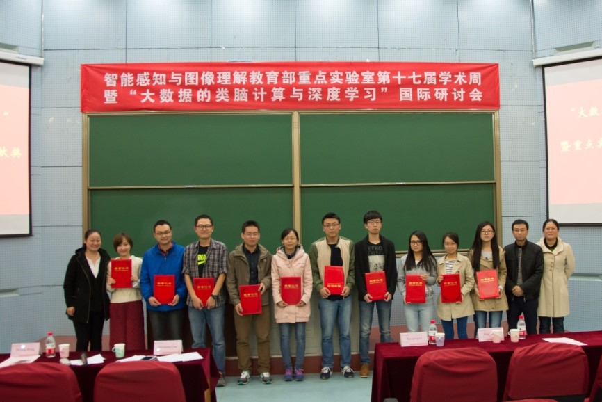 闭幕式上,智能感知与计算国际合作联合实验室、智能感知与图像理解教育部重点实验室、智能感知与计算国际联合研究中心主任焦李成教授发表了热情洋溢的讲话,同时对师生们提出了殷切的期望,勉励怀揣梦想的青年学子放眼国际、努力奋斗、成长自己,并希望大家通过此次学术活动,拓宽学术视野,提高学术创新能力。最后,智能感知与图像理解教育部重点实验室侯彪教授同王爽教授为做出贡献的博士研究生、硕士研究生颁发了“学术之星”和“突出贡献奖”的荣誉证书。获“学术之星”荣誉称号的学生有:刘芳、赵进、罗娟娟、郭雨薇、李莹玉、李豪、焦志成和孙其功;获“突出贡献奖”荣誉称号的学生有:冯志玺、任燕、唐旭、刘旭、谢雯、赵佳琦、郭贤朋、李玲玲、孟繁荣、杨争艳、巨妍。