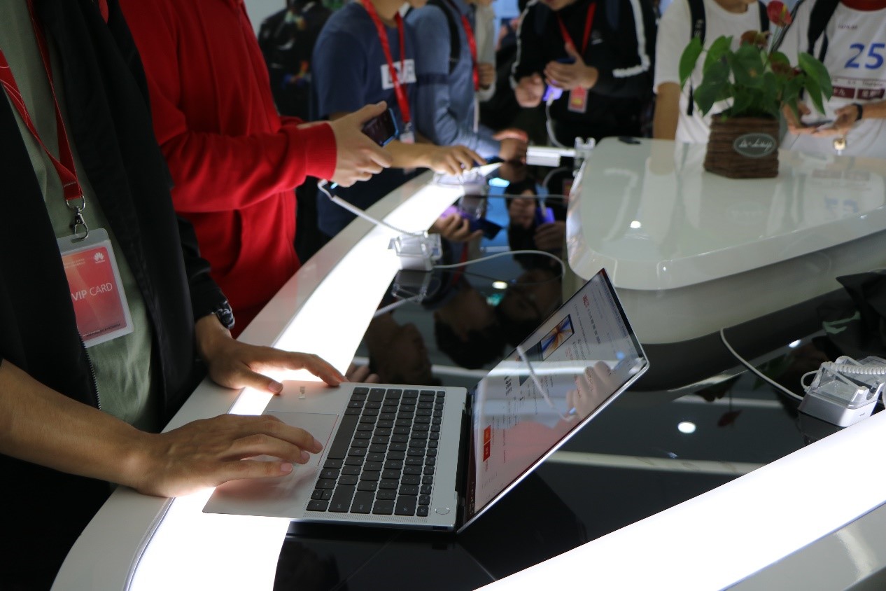 在这里,同学们看到了信息记录在华为云上的办公主机,可以远程协作的数字写字板及远程视频屏幕。从旧到新成列的数字交换机让同学们感受到了华为的发展和技术的进步。大屏幕上展示着一系列华为技术介绍片,从通话技术到5G技术,每一项技术突破都值得所有华为人为之骄傲。