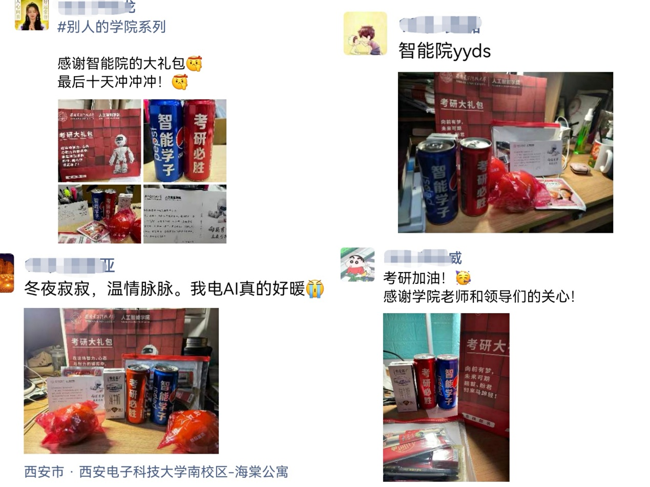 拿到“大礼包”的智能学子们脸上洋溢着幸福的笑容,所有的压力和疲惫仿佛在此刻消散,大家纷纷在朋友圈秀出自己的礼包,表达感恩与感动,同时为自己、为同学加油助力!