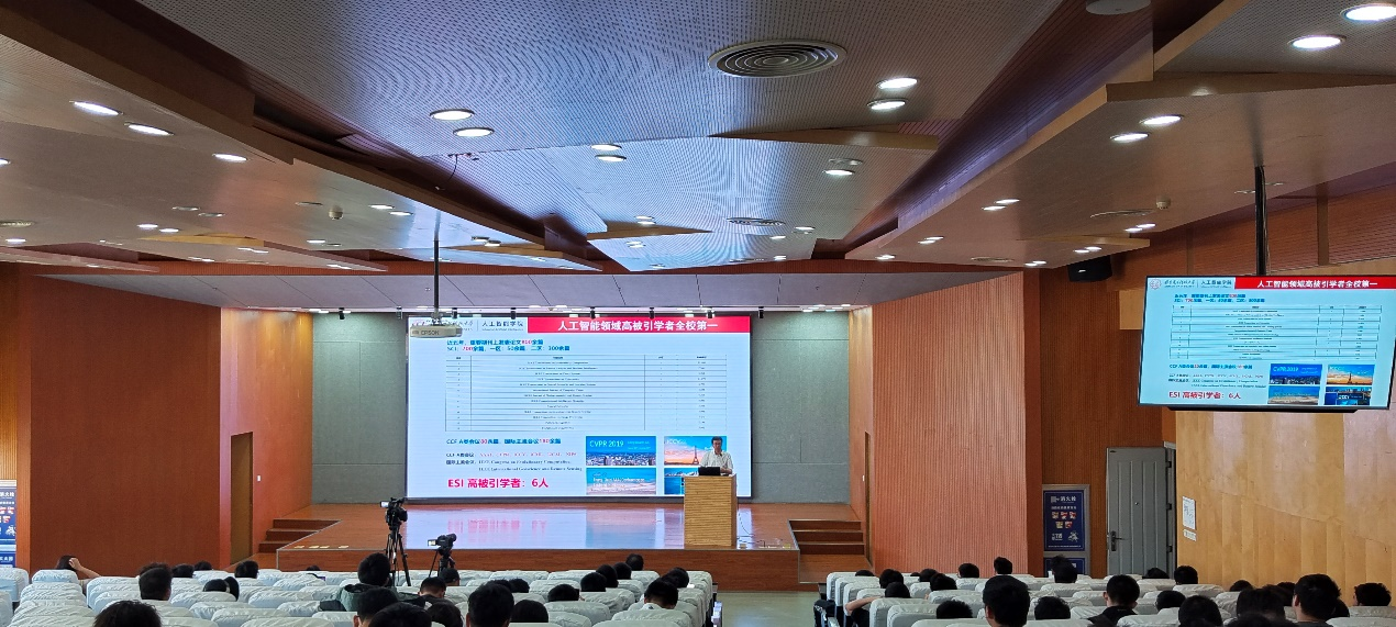 侯彪教授首先以“ ‘人工智能+’打开新质生产力大门”为题,从西电人工智能发展历程、学科方向、创新领域、突出科研成果等方面展开详细介绍,使同学们详细了解了西电人工智能领域的突出成就以及发展方向。