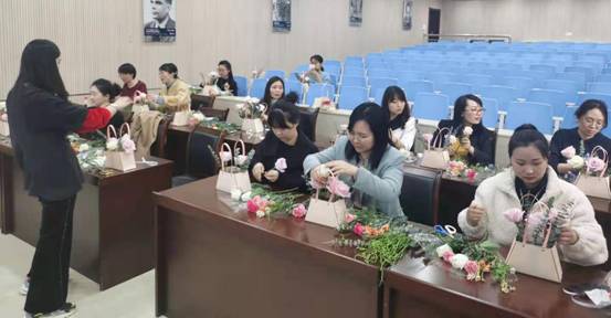 活动邀请了花艺老师为大家讲解插花基本知识及插花技巧,并进行了现场模拟插花以及互动体验,永利官网女教职工在专业老师的指导下积极参与和互动,互动现场弥漫着鲜花的香味,洋溢着阵阵欢声笑语,大家体验着花艺活动带来的放松,享受着欢乐的插花活动,插花活动在温馨、快乐的氛围中圆满结束。