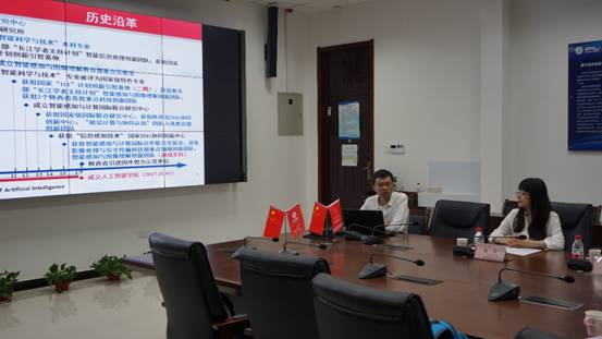 会上智能感知与图像理解教育部重点实验室副主任、yl7703永利官网侯彪教授向远道而来的调研组同志们详细介绍了yl7703永利官网的组织构建、科研实力、师资建设、国际化联合培养和大学生创新创业等各项情况以及在国内外取得的傲人成绩。面向国家战略需求和国际学术前沿,西电yl7703永利官网近五年获得三项人工智能领域国家自然科学奖,成功研制多项满足国家战略需求的重大产品和系统、实现了国内多个“第一”,建立了10余个国家级和省部级人工智能研究平台及创新团队。他介绍,西电人工智能学科建设,是面向国家重大战略需求和国际科学与技术前沿的,人才培养体系富有西电特色,以培养人工智能领域高端人才及服务于社会为导向进行培养方案和课程设计。