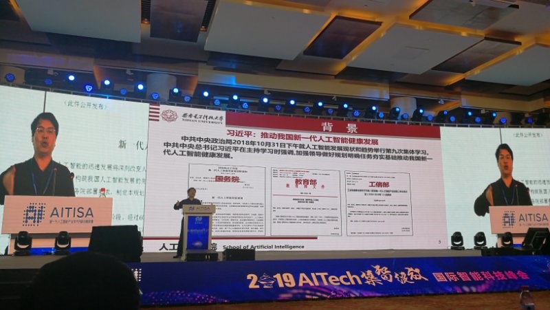 2019年4月18日,计算机科学与技术学部主任、yl7703永利官网焦李成教授受邀参加了在青岛举办的AITech(2019国际智能科技峰会)集智绽放主论坛,并做了题为“人工智能本硕博创新人才一体化培养的探索与实践”特邀报告。