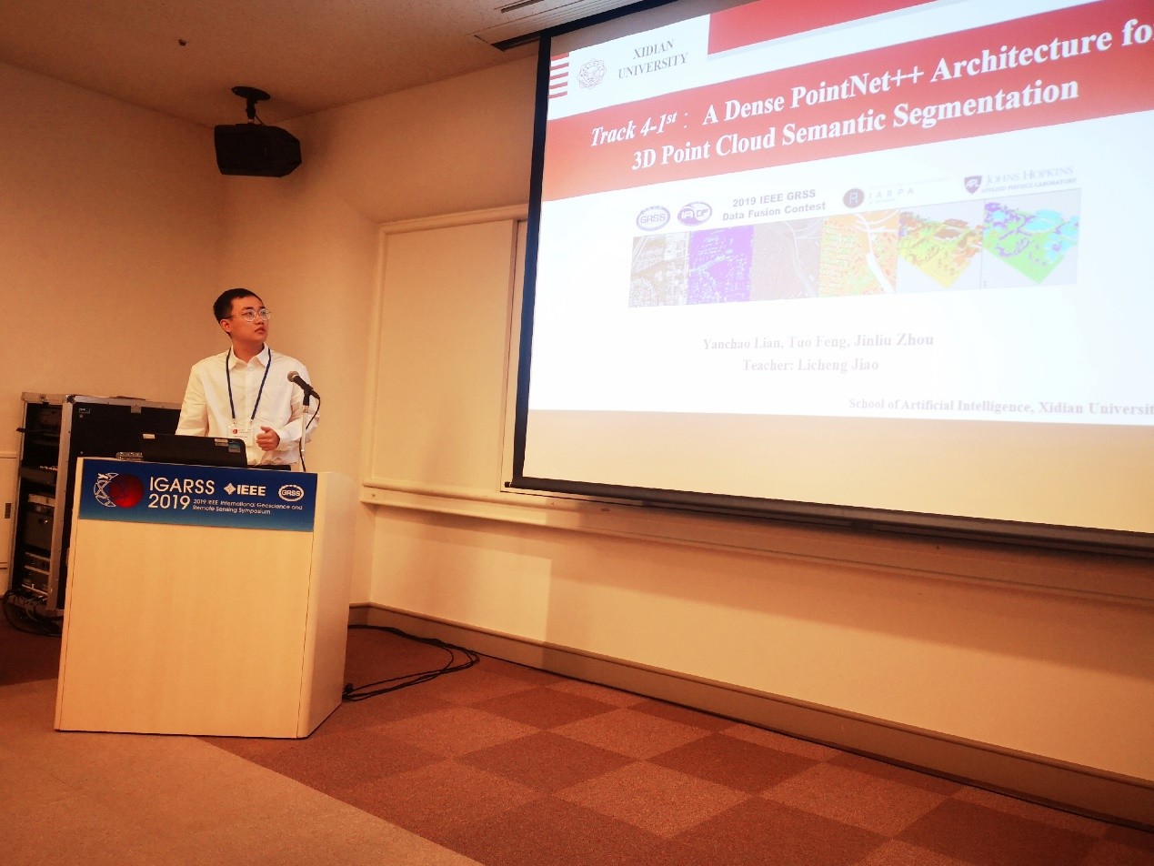 由yl7703永利官网焦李成教授指导的两支学生队伍在2019 IEEE GRSS数据融合竞赛中获得了优秀成绩,其中,“连彦超、冯拓、周金柳”获得了3D点云分类挑战赛冠军,“贾美霞、李艾瑾、吴兆阳”获得了同赛道亚军,并受邀在2019年7月31日大会上作专题报告。