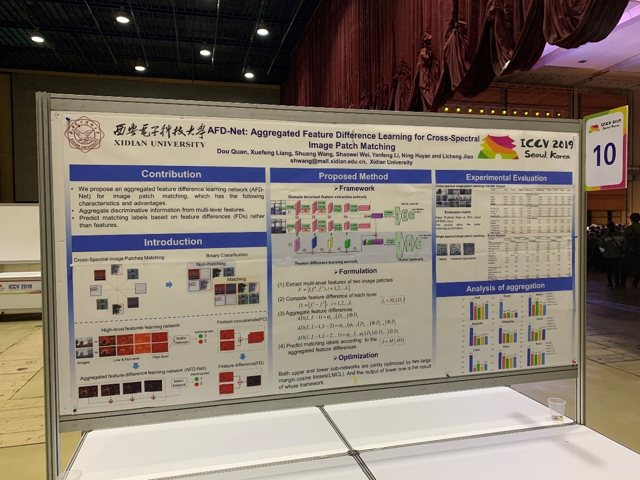 由yl7703永利官网梁雪峰教授、王爽教授和焦李成教授指导,博士生权豆等完成的论文《AFD-Net: Aggregated Feature Difference Learning for Cross-Spectral Image Patch Matching》以及硕士生李彦峰等完成的论文《Better and Faster: Exponential Loss for Image Patch Matching》被ICCV 2019录用,其中“AFD-Net” 为口头报告(Oral)论文,而ICCV 2019的Oral录用比例仅为4.62%。