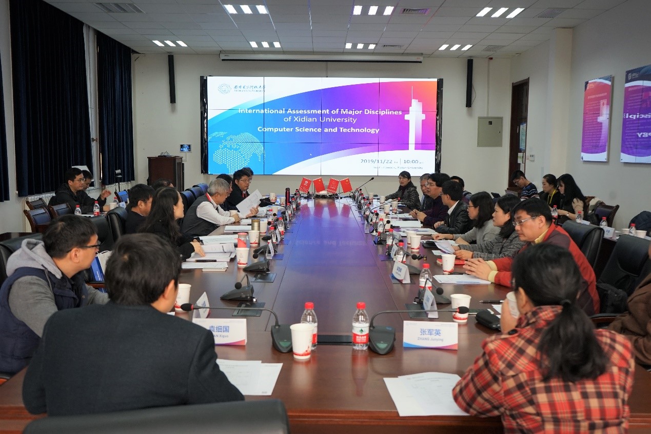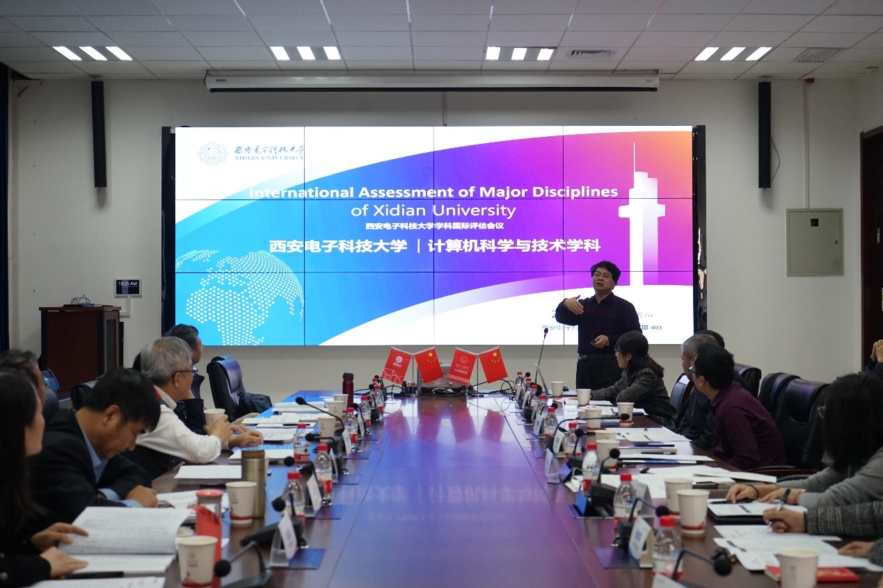 计算机科学与技术学科国际评估专家组由7位专家学者组成,包括IEEE Fellow、香港中文大学(深圳)讲席教授陈长汶,IEEE Fellow、英国萨里大学讲席教授(Distinguished Chair)金耀初,IEEE Fellow、北京大学“博雅”讲席教授张大庆,IEEE Fellow、上海交通大学讲席教授邱才明,IEEE Fellow、清华大学孙富春教授,教育部长江学者特聘教授、中山大学肖侬教授以及国家杰出青年科学基金获得者、西北工业大学袁媛教授。焦李成教授首先从探索与实践、建设成果与现状、问题与挑战三个角度向专家组详细汇报了计算机科学与技术学科的整体建设情况及学科未来建设愿景,涵盖学科建设、师资队伍、科学研究、人才培养、国际交流等各个方面。专家组对学科人才培养、基础设施、实验条件、科研成果等给与了充分肯定,结合西电特色、高校国际评估经验以及国际一流学科发展建设路径,对优化学科布局、师资队伍以及生源结构、加大人才培养力度、促进学科交叉、加强学科基础研究、加强教材建设、改革绩效考核和科研激励配套机制等方面提出意见建议。焦李成教授及我校与会教师认真听取并记录了专家意见,与专家组就学科的未来发展进行了深入交流。