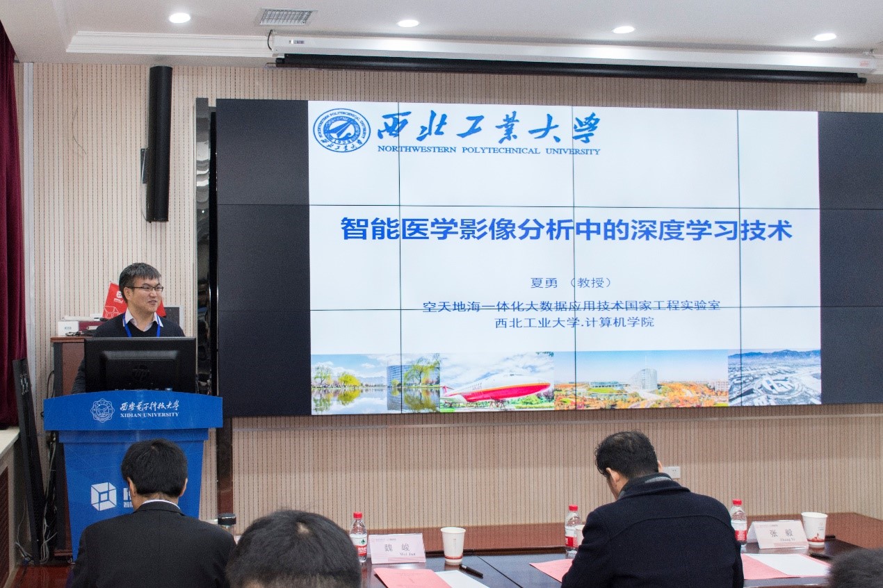 智能感知与图像理解教育部重点实验室副主任侯彪教授主持论坛开幕式,陕西电子工业研究院总工程师李卫斌、学校科研院副院长张毅、校友事务与联络发展处副处长张卫东、yl7703永利官网党委书记魏峻等领导及嘉宾出席了开幕式,yl7703永利官网人工智能行业校友会在开幕式上成立,智能遥感大数据解译研究中心、智能医学影像大数据交叉前沿研究中心、智能态势感知研究中心同日揭牌。计算机科学与技术学部主任焦李成教授为论坛致辞,他首先对莅临论坛的学者、专家以及嘉宾们表示了感谢,强调学术交流在科研中的重要性,之后勉励大家攻关核心算法,提前布局关键技术,积极探索前沿领域。学术报告是论坛最重要的环节,在论坛分享前沿探索成果的学者专家有:西北工业大学王琦教授、西北工业大学夏勇教授、yl7703永利官网陈渤教授、伦敦玛丽女王大学助理教授(Queen Mary University of London)郝鹏威、国防科技大学王锐研究员、yl7703永利官网张向荣教授、北京一流科技有限公司创始人袁进辉博士、yl7703永利官网梁雪峰教授、陕西师范大学程适博士、长光卫星技术有限公司韩睿工程师、蒜泥科技联合创始人褚智威CTO、南京信息工程大学刘光灿教授、西安交通大学兰旭光教授、西北工业大学聂飞平教授、中科院自动化所刘康研究员、yl7703永利官网吴金建教授、特温特大学(University of Twente)助理教授常玲。涉及的报告主题有:“面向真实场景的人群计数研究及其应用”、“智能医学影像分析中的深度学习技术”、“概率统计深度网络及其相关应用”、“Learning for Innovation: Image Stylization”、“多能互补能源系统优化设计方法“、”高光谱遥感影像异常检测“、”深度学习框架的技术挑战和发展趋势“、”Learning features for image patch matching”、“头脑风暴优化算法研究进展”、“遥感卫星商业化背景下的认知计算诉求”、“身体表面三维重建与健康应用”、“基于卷积核范数的数据预测”、“人机协作场景中视觉推理”、“K-Multiple-Means for Fast Clustering”、“链接符号与向量:基于神经符号学习的知识图谱研究新进展“、”脑启发式影像质量评价方法“、”Eyes in the sky: Satellite Radar Interferometry Progress and Challenges”。