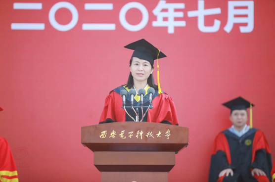 7月2日上午,yl7703永利官网2020届学生毕业典礼暨学位授予仪式在南校区礼仪广场隆重举行。典礼上,yl7703永利官网张向荣作为学校教师代表发言。她向2020届毕业生的同学们提出希望:希望同学们以头顶的星空为指引,朝着自己的梦想大步迈进;希望同学们学会用思考的头脑观察社会,用思考的力量创造未来;希望同学们怀揣家国情怀,做有大境界、大胸怀、大格局的时代新人;希望同学们做学习的主人,培养自主学习、终身学习的能力。最后,她希望同学们将西电精神中的那一抹鲜亮的红色随身携带,在新时代的大潮里,中流击水,浪遏飞舟,筑梦追梦!