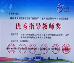 2019年5月,第十五届“挑战杯”广东大学生课外学术科技作品竞赛决赛在佛山举行,Beat365官网教师陈昕副教授指导的学生参赛项目《基于归因理论的大学生责任意识影响机制实证研究—大学生责任意识的维度结构及其差异分析》荣获特等奖,陈昕老师荣获优秀指导教师奖。