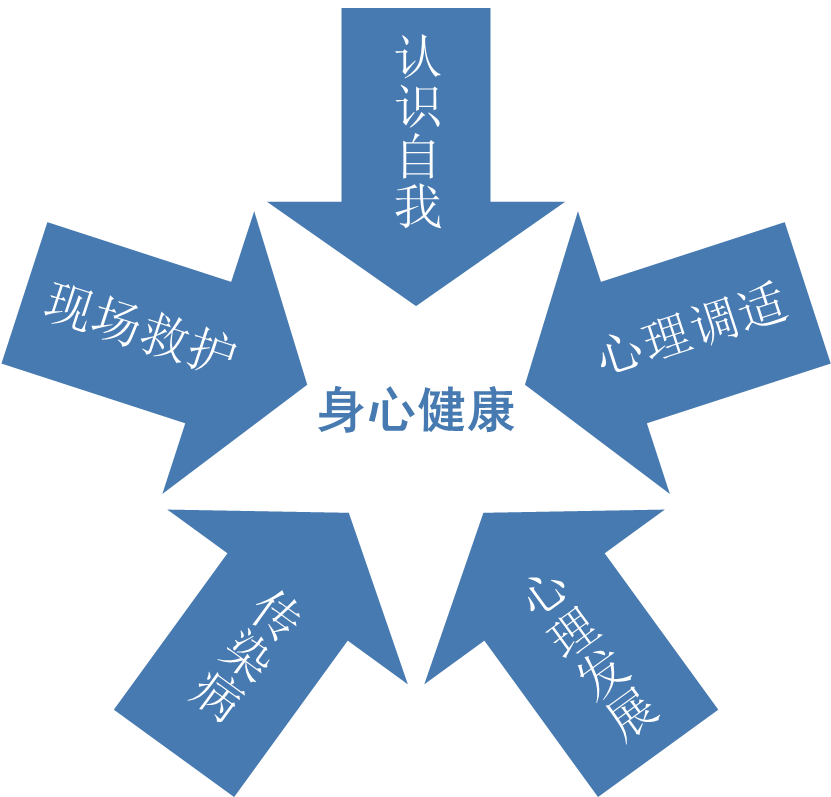 本课程主要引导学生掌握与身体健康有关的基本常识、包括心理健康有关的基本知识、常见的心理疾病及表现症状、维护心理健康的基本方法、了解常见的传染病的症状和预防方式、现场救护的知识。