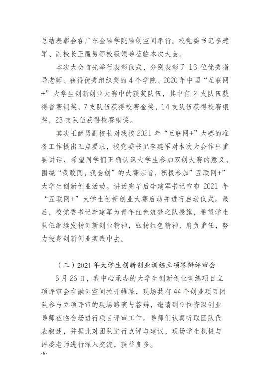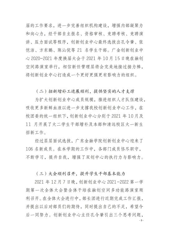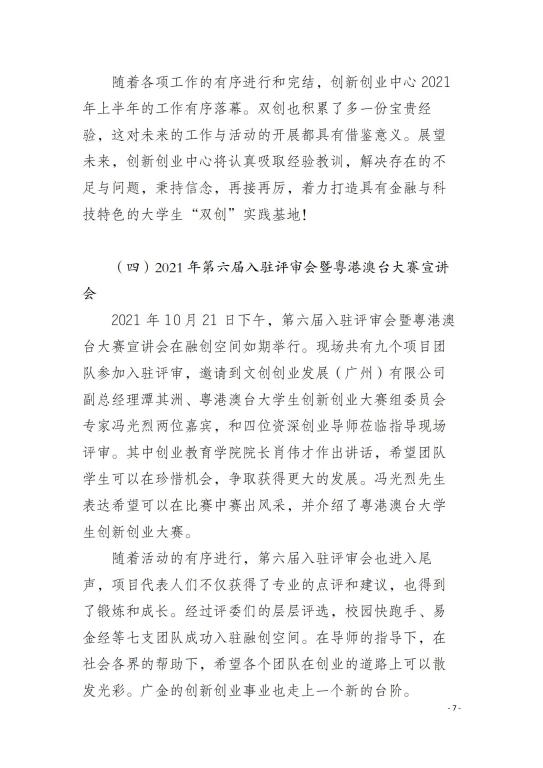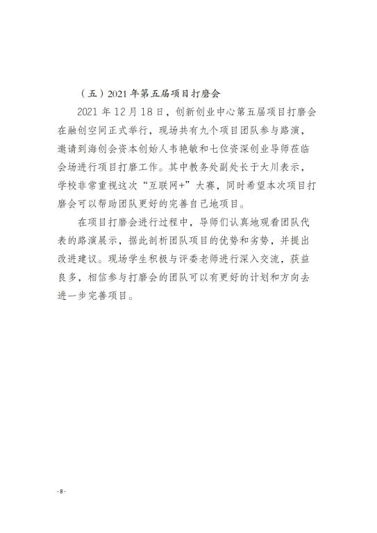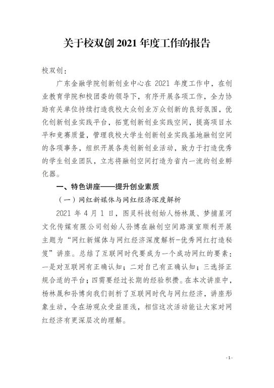 大学生创新创业实践基地(融创空间)2021年度工作报告