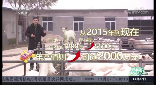 2020年11月27日,中央电视台中文国际频道“百村扶贫记”第六十二期对西电yl7703永利官网奶山羊智慧养殖扶贫项目进行了专题报道。