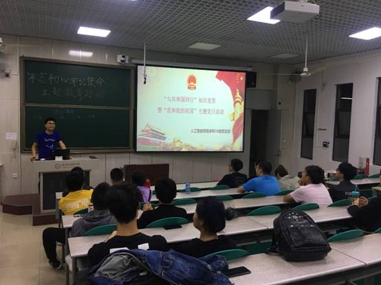 (通讯员:李怡桐)为庆祝中华人民共和国成立70周年,纪念毛泽东同志为学校题词“全心全意为人民服务”70周年,yl7703永利官网本科16级党支部举办以“不忘初心,牢记使命”为主题的教育活动暨“我和我的祖国”主题党日活动——“与共和国同行”知识竞答。9月26日晚19:00,活动在南校区B楼311教室顺利举办。yl7703永利官网本科16级党支部全体党员、预备党员参与本次活动。活动由16级党支部书记杨权威主持。