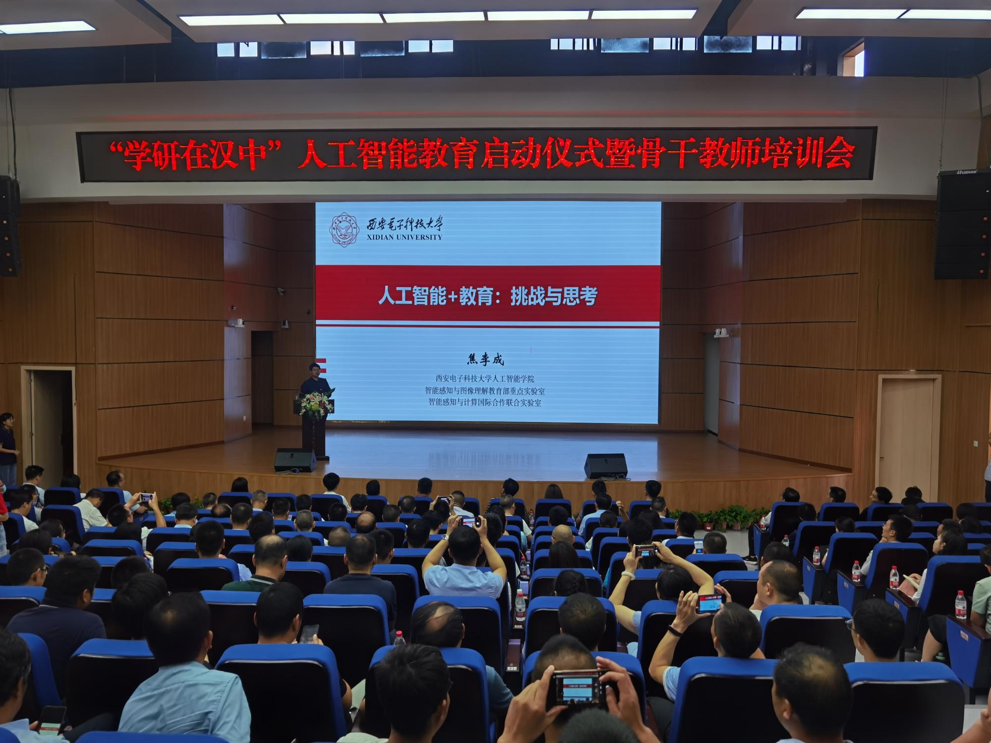2021年7月13日,计算机科学与技术学部主任、yl7703永利官网焦李成教授受邀做客“学研在汉中”人工智能教育启动仪式暨骨干教师培训会,并做了题为“人工智能+教育:挑战与思考”的报告。